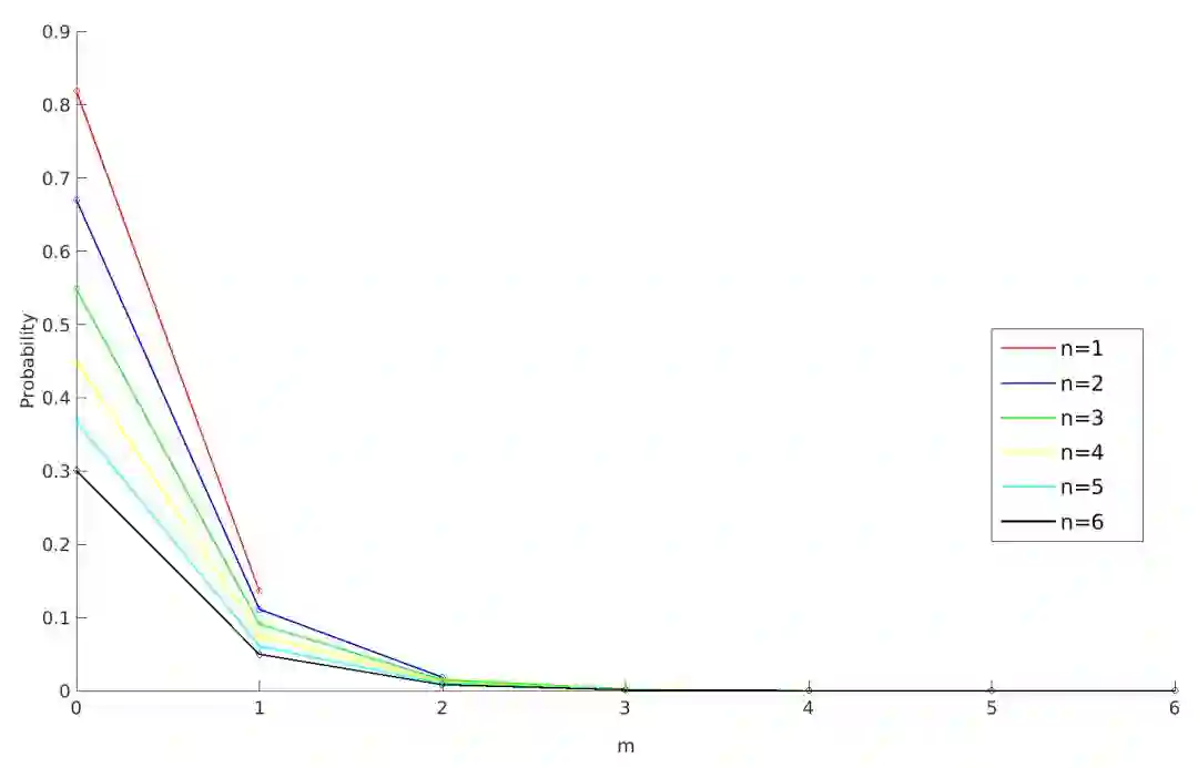 从曲线可以看出,随着n的增大以及m的增大,概率衰减得特别快。