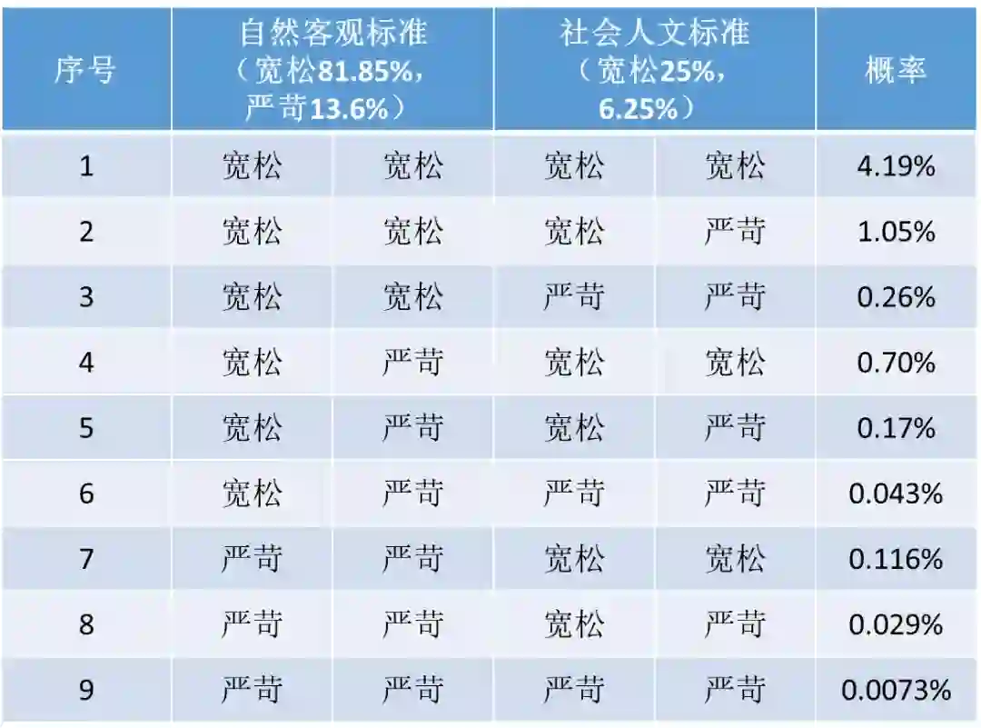 我们假设在两类标准中各选两个择偶标准,则共有9种不同的宽松组合。