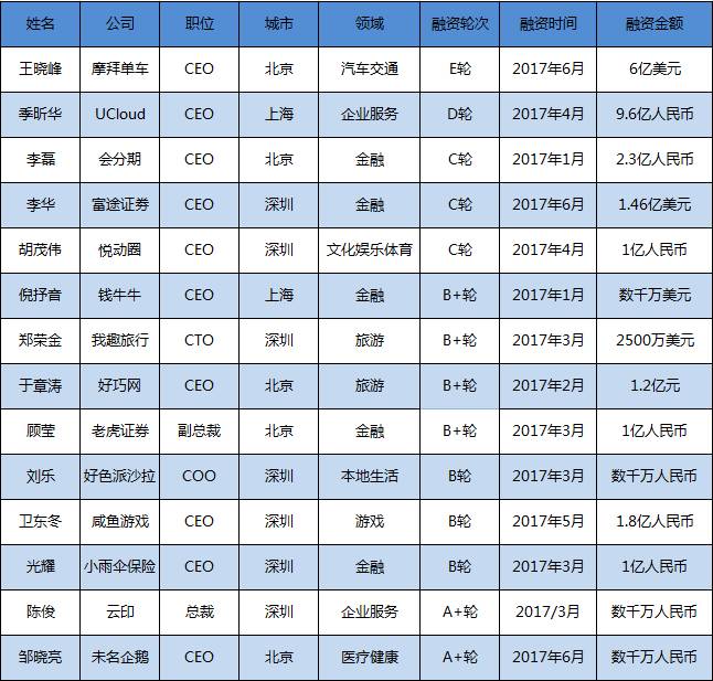 (已上榜企业中 2017年上半年有新融资的动态更新)