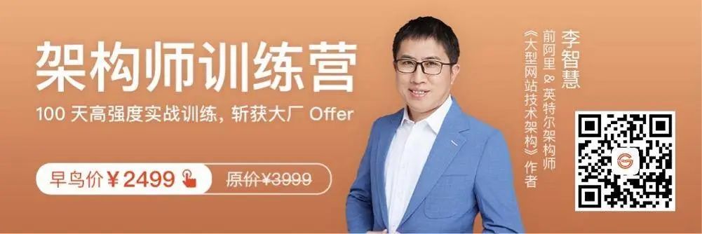 第 0 期早鸟招生,早鸟优惠 ¥2499(原价 ¥3999)。通过下方图片或底部“阅读原文”链接,即可进入页面,立即报名。扫码添加下面领 432 大厂架构案例的学习顾问,还可以再领取 ¥100 优惠,报名立减。