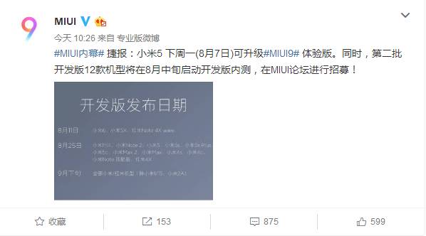 此外,小米还表示,第二批开发版12款机型将在8月中旬启动开发版内测,届时会在MIUI论坛进行招募。