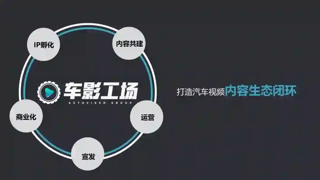 再说一下车影工场。我们在做汽车洋葱圈的时候,就没有想过只做一个IP,一个自媒体。如果只做一个自媒体,一年也可以赚很多钱,但是有的时候赚钱和做事,每个人所看重的点是不一样的。所以我们想通过自己的专业性,通过自己的行业资源,对接不同的人,帮助他们实现梦想,于是我们就成立了公司,叫车影工场。