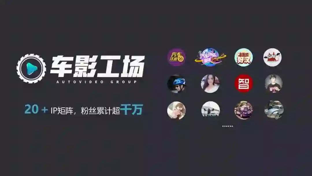 最后,我们这个平台其实是帮助内容创作者从内容制作运营,最后到商业变现的全体系MCN机构。在我们的汽车矩阵里有20多个IP,粉丝加起来超过千万,包括有我们自有的,还有孵化投资的,还有签约的。
