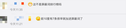 不过,很自然地,当同样的内容出现了太多次后,就会引起反感。不少用户吐槽表示,这个排行榜难道不是年度十大屏蔽词吗?