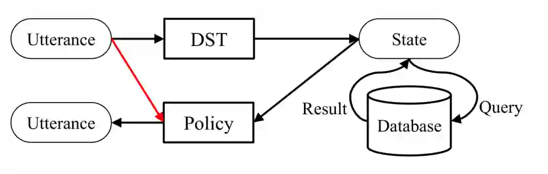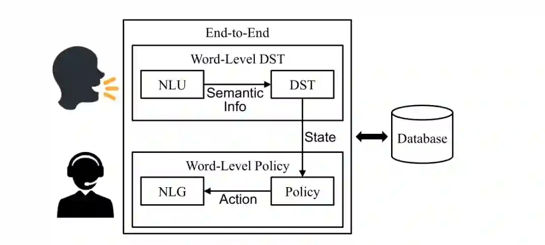 第三类介于上述两种类型之间,有些系统使用结合了四种对话框组件中的某些(但不是全部)的运动类型模型。(例如,联合词级DST模型结合了NLU和DST,联合词级策略模型结合了对话策略和NLG。)