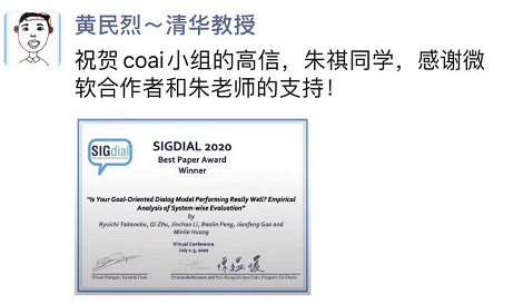 作为ACL和ISCA所属的关于对话系统的兴趣小组的年度会议,SIGDIAL 2020已经开幕。其中,清华COAI小组拿到了SIGDIAL2020最佳论文。