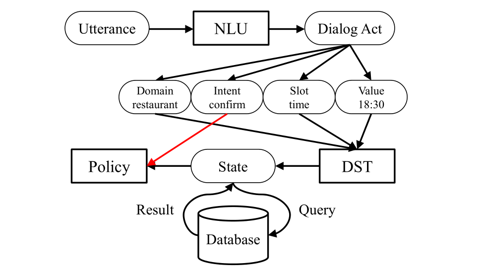 第一类是pipeline(或模块化)系统,通常由四个部分组成:自然语言理解(NLU)、对话状态跟踪(DST)、对话策略(Policy)和自然语言生成(NLG)。