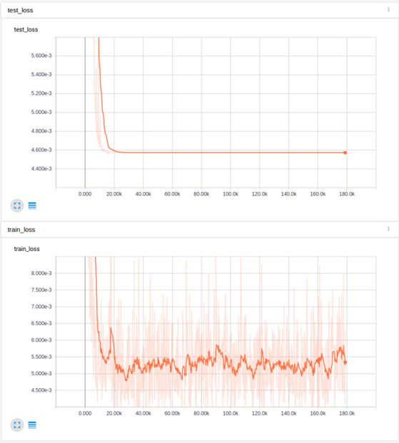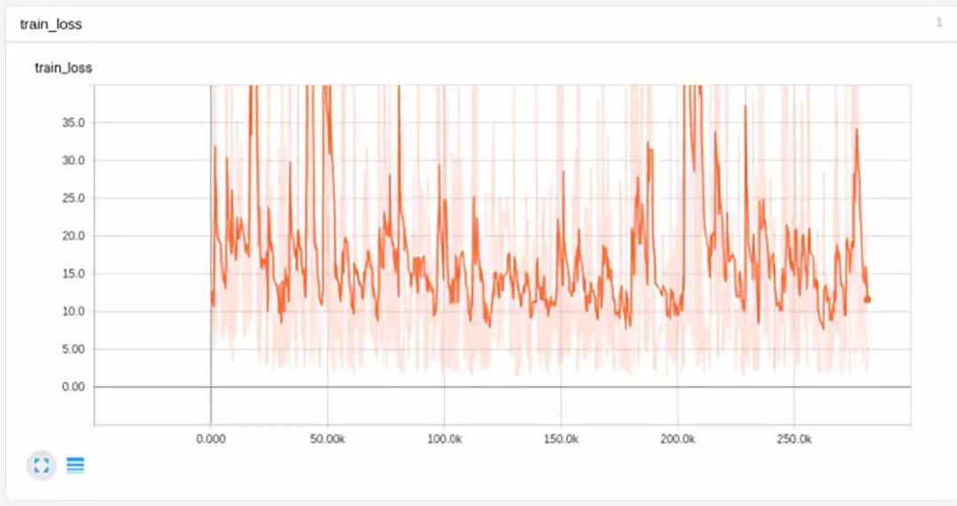 我们就是在这一步发现,去掉批处理规范化后,网络输出很快在一到两次迭代后变成NaN。于是,我们停止了批处理规范化并且把初始化改为方差标准化。这样一下就解决了问题,用一两个输入样本训练就能达到过拟合。虽然图下方的Y轴的值被剪切了,但是初始的误差在5以上,表明误差几乎下降了4个数量级。