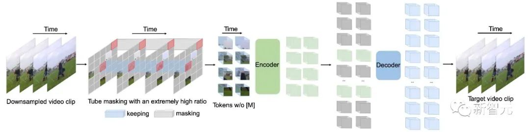 我们这个工作的主要贡献包含以下三个方面:• 我们第一个提出了基于ViT的掩码和重建的视频自监督预训练框架VideoMAE。即使在较小规模的视频数据集上进行自监督预训练,VideoMAE仍能取得非常优异的表现。为 了解决由时序冗余性 (temporal redundancy) 和时序相关性(temporal correlation) 导致的「信息泄漏」问题,我们提出了带有极高掩码率的管道式掩码(tube masking with an extremely high ratio)。实验表明,这种设计是VideoMAE 最终能够取得SOTA效果的关键。同时,由于VideoMAE的非对称编码器-解码器架构,大大降低了预训练过程的计算消耗,极大得节省了预训练过程的时间。• VideoMAE 将NLP和图像领域中的经验成功在视频理解领域进行了自然但有价值的推广,验证了简单的基于掩码和重建的代理任务可以为视频自监督预训练提供一种简单但又非常有效的解决方案。使用 VideoMAE 进行自监督预训练后的 ViT 模型,在视频理解领域的下游任务(如动作识别,动作检测)上的性能明显优于从头训练(train from scratch)或对比学习方法(contrastive learning) 。• 实验过程中还有两处有意思的发现,可能被之前NLP和图像理解中的研究工作忽视了: (1) VideoMAE是一种数据高效的学习器。即使在只有 3 千个左右的视频数据集HMDB51上,VideoMAE也能够完成自监督预训练,并且在下游分类任务上可以取得远超过其他方法的结果。(2) 对于视频自监督预训练,当预训练数据集与下游任务数据集之间存在明显领域差异(domain gap)的时候,视频数据的质量可能比数量更加重要。