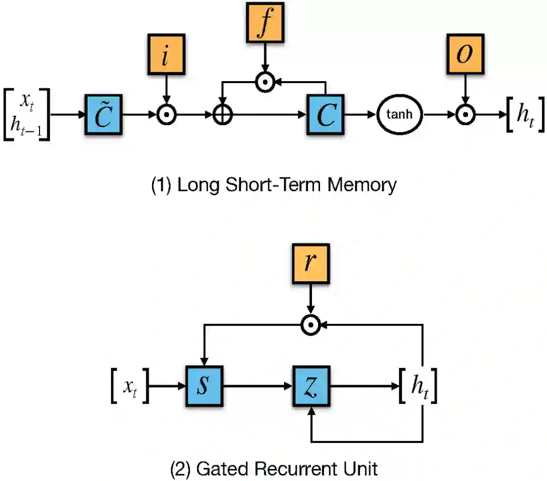 图 10:LSTM 和 GRU 门图示(图源:https://arxiv.org/abs/1412.3555)
