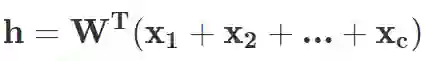 在更广泛的 CBOW 模型中,所有上下文词的 one-hot 向量都会同时作为输入,即:
