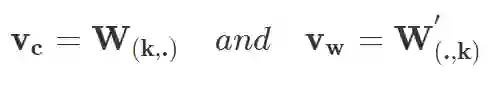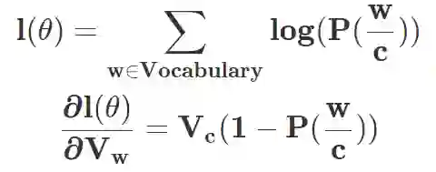 参数 θ={V_w, V_c} 都是通过定义目标函数而学习到的,一般目标函数可以定义为对数似然函数,且通过计算以下梯度更新权重: