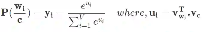 总体而言,在给定上下文词 c 作为输入的情况下,对于任意词 w_i 有: