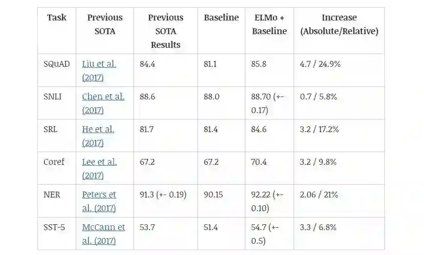2018 年,使用预训练的语言模型可能是 NLP 领域最显著的趋势,它可以利用从无监督文本中学习到的「语言知识」,并迁移到各种 NLP 任务中。这些预训练模型有很多,包括 ELMo、ULMFiT、OpenAI Transformer 和 BERT,其中又以 BERT 最具代表性,它在 11 项 NLP 任务中都获得当时最佳的性能。不过目前有 9 项任务都被微软的新模型超过。下图展示了不同模型在 12 种 NLP 任务中的效果: