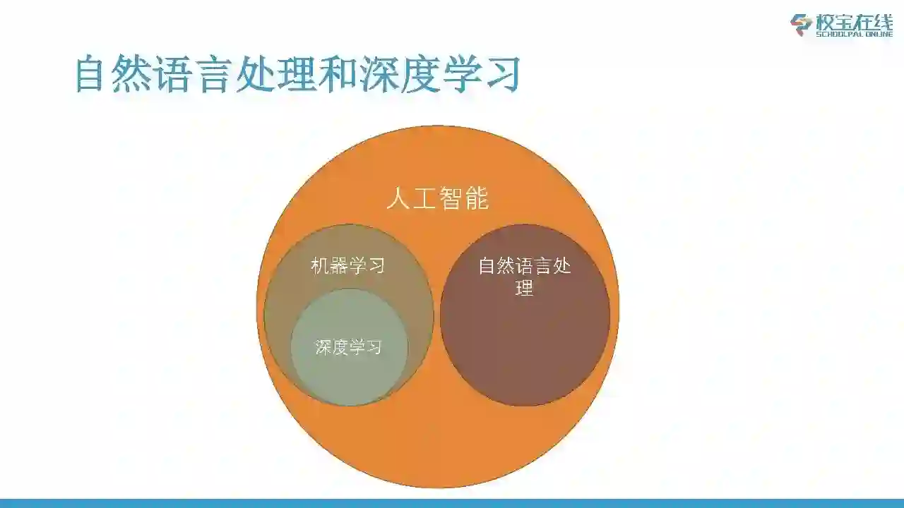 下面这个图里的概念大家已经非常熟悉了,其实它们都是人工智能下面的子领域,两者是平行的。而深度学习是机器学习的一个子领域。也就是说对于自然语言处理来说,用非深度学习的方法来做自然语言处理的任务也是没有问题的。