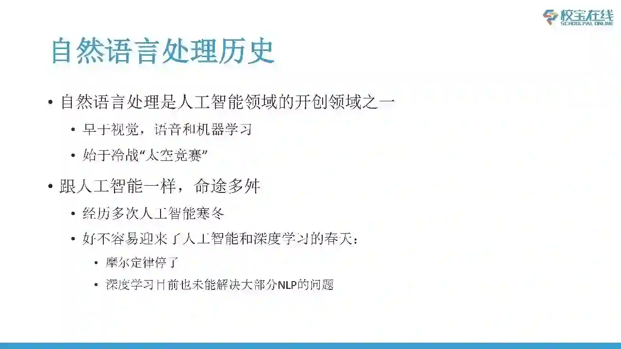 在讨论AI的时候,我心里面的第一反映其实是它跟教育是最契合的一个点,但大家好像提得比较少。我觉得语言是大家学习的对象,母语或外语都是对自然语言的研究。第二教师的授课、教材也都是自然语言,所以说我很惊讶的发现大家对AI展望的时候有时候比较忽略NLP方面的一些信息。这也是今天我为什么会讲这个主题的原因。
