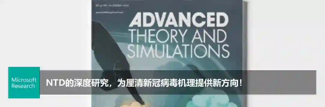2021 年,微软亚洲研究院与清华大学在《Advanced Theory and Simulations》上共同发表了封面文章《通过分子动力学模拟探索 SARS-CoV-2 刺突蛋白 NTD 的调控功能》(Exploring the Regulatory Function of the N-terminal Domain of SARS-CoV-2 Spike Protein Through Molecular Dynamics Simulation)[1]。