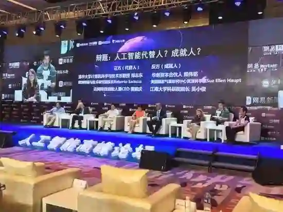 9月12日,由网易科技、网易智能、网易本地联合推出的“网易AI公开课”在无锡华邑酒店正式开启,这一档面向中国新锐城市的高端城市论坛,这也是首档以人工智能为主题的系列公开课。作为此次大会的压轴环节,大会进入最后一个也是最精彩的一个环节:主题辩论。此次辩论的主题是《人工智能替代人还是成就人》,正方:人工智能将会替代人VS反方:人工智能成就人。