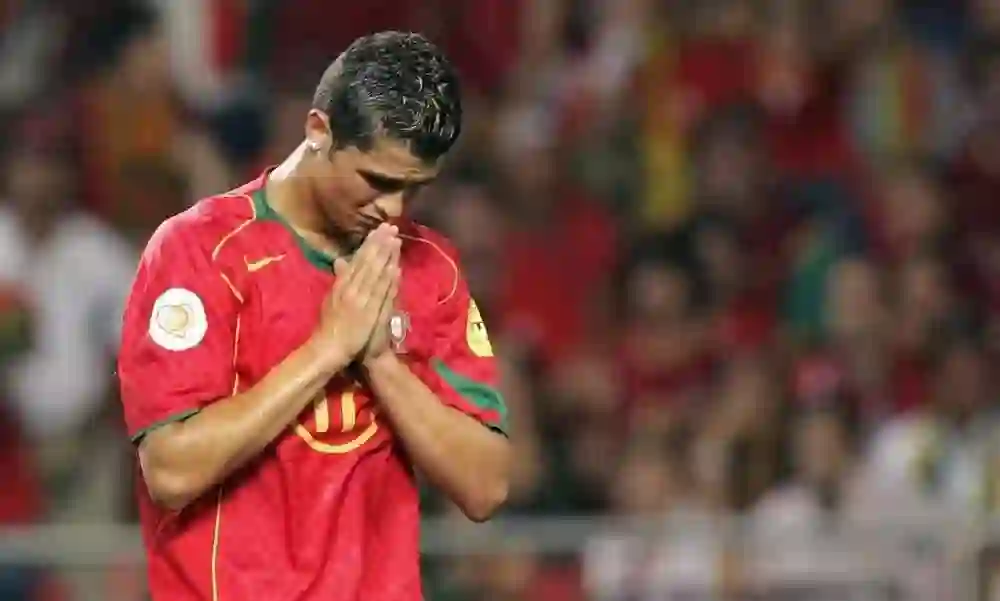 决赛中,坐拥主场之利的葡萄牙 0:1 失利,成就了那个夏天的希腊神话。赛后C罗哭成了泪人,球队的老大哥们,有葡萄牙“黄金一代”之称的鲁伊·科斯塔和保莱塔等人纷纷安慰了他,还有菲戈——当时葡萄牙足球的代表人物,上一任 7 号球衣拥有者——也深情拥抱了他,并将葡萄牙足球的希望之火,传递到了C罗身上。
