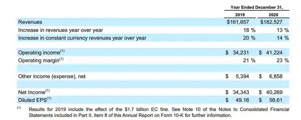 △ 2020财年,谷歌的综合财务业绩