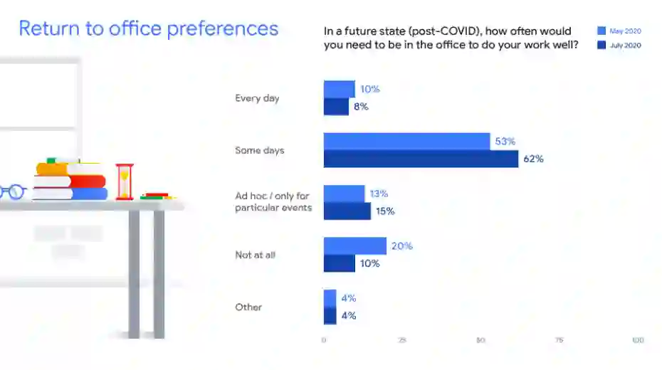 去年7月谷歌进行的员工办公室偏好调查结果显示,