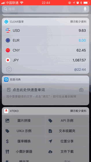 你只需在通知中心中,按下其小部件的某个图标便可完成预设好的动作,如:与特定的人通讯、快速访问喜爱的网站、执行应用程序操作等。