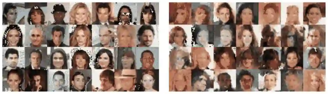 左为降采样至32x32的原图,右为BGAN生成的图片