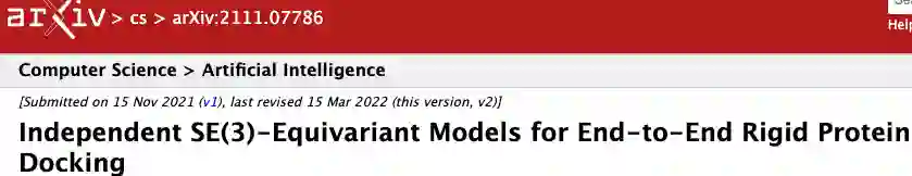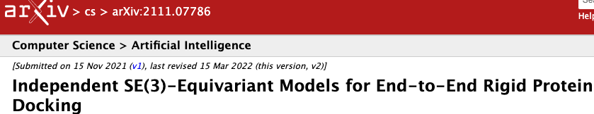 MIT作者第一篇工作"Independent SE(3)-Equivariant Models for End-to End Rigid Protein Docking"开发了EquiDock模型,直接将蛋白与蛋白对接速度提高500倍。
