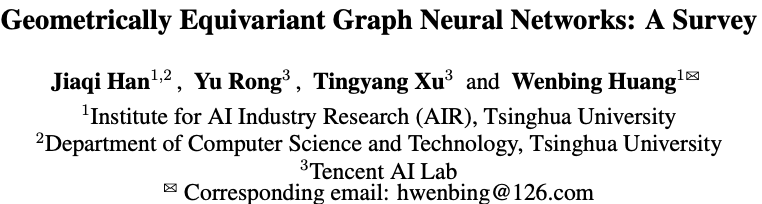 [1] Geometrically Equivariant Graph Neural Networks: A Survey