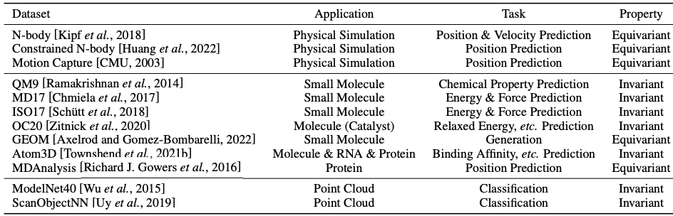 有大量的工作基于 TFN 结构做了相应的扩展,例如加入 Attention 机制, 引入非线性的 Clebsch-Gordan 系数等。但是这类方法计算复杂度都较高,且不可约表示仅仅适用于特定的群。这约束了这类模型的表达能力。