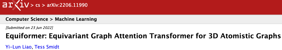 2022年7月23日,MIT的Tess Smidt团队发表了题为"Equiformer:Equivariant Graph Attention Transformer for 3D Atomistic Graphs"的文章,作者将等变图神经网络结合Transformers的优势构建了Equiformer模型
