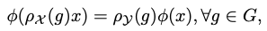 其中ρX是输入中的群表征和ρY是输出空间。具体来说,如果ρY是恒等式(identity),则φ称为不变的(invariant)。