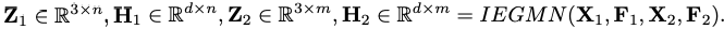 ϕx , ϕh , ϕe , ψq , ψk为不同的IEGMN共享或不同层。几个IEGMN层输出表示为: