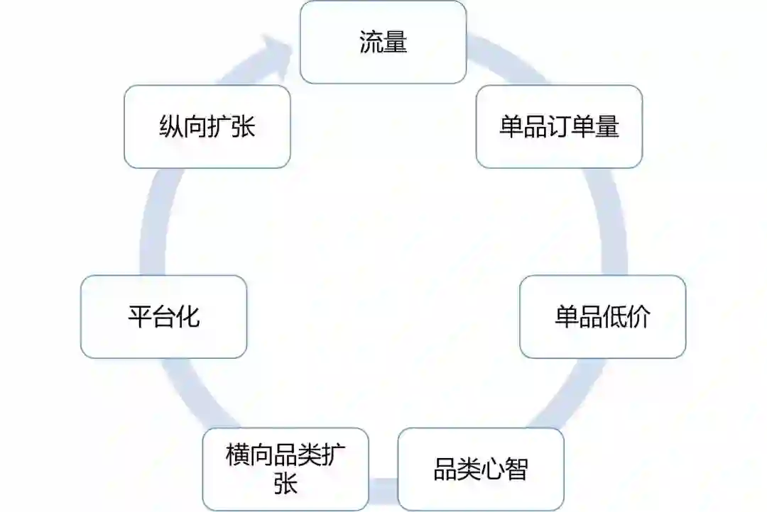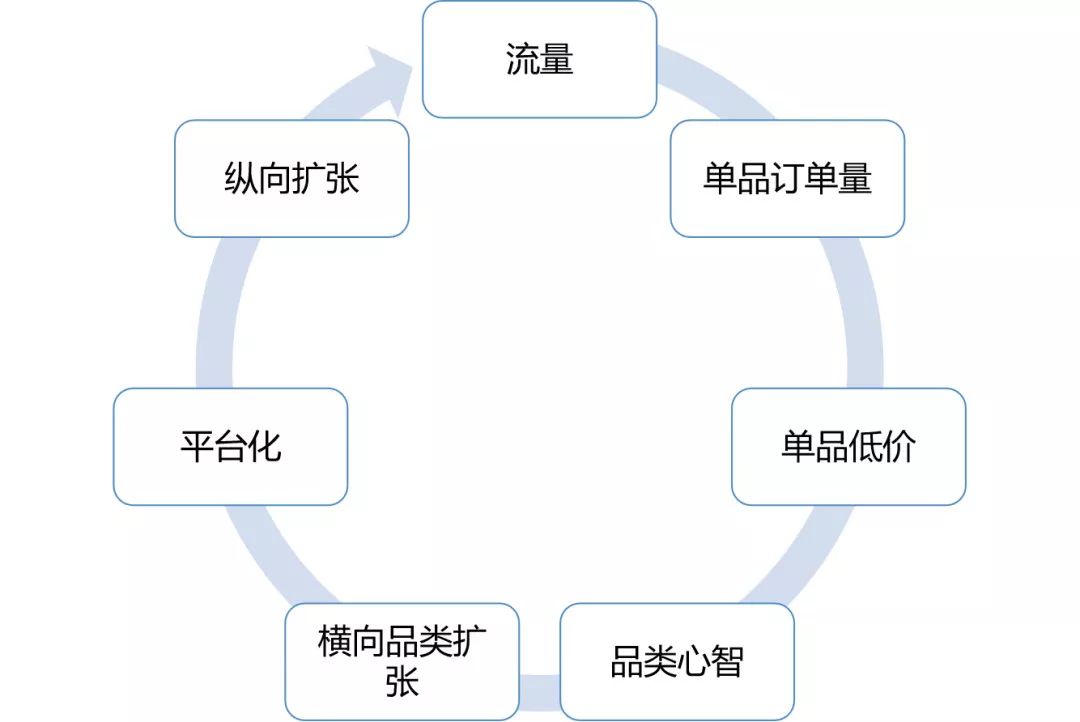 有了“低价”,就可以成为一个吸引用户的理由,从而获得流量;而流量越多,就又有可能带来高订单量,从而继续这个循环。