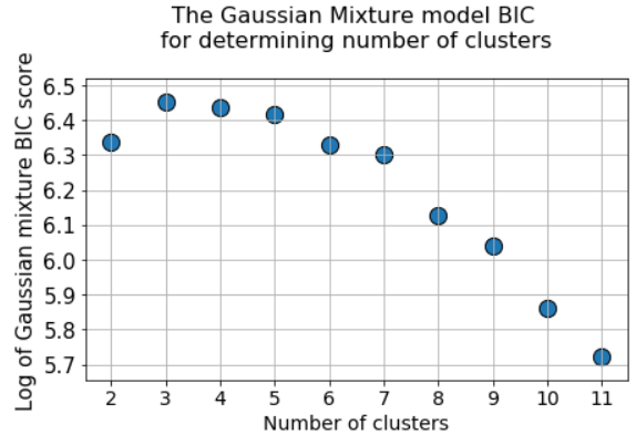 BIC方法惩罚了大的高斯函数数量,并试图使模型足够简单以解释给定的数据模式。