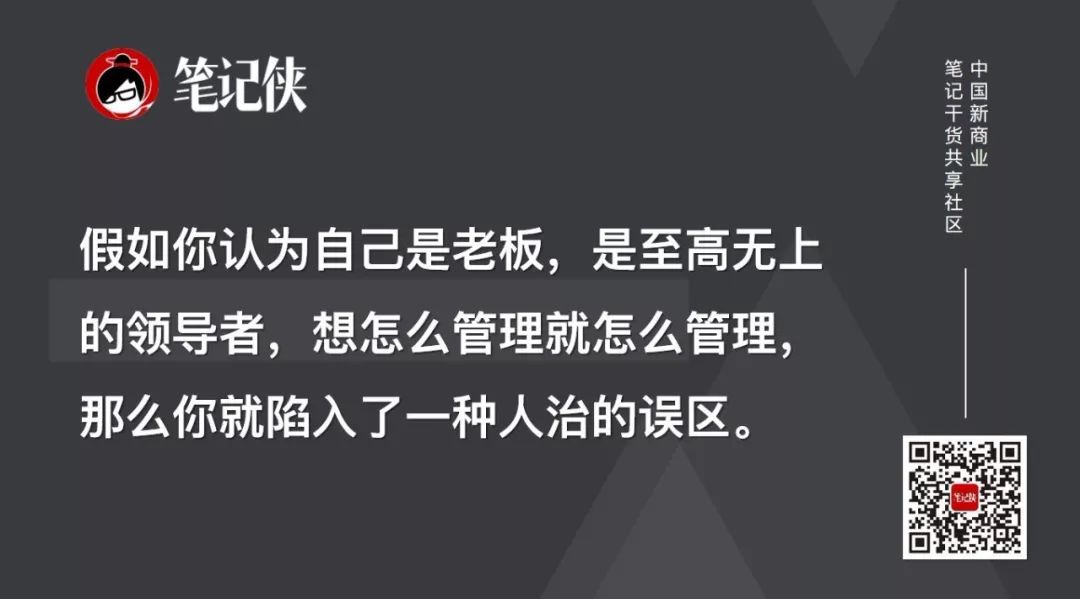 假如你认为自己是老板,是至高无上的领导者,想怎么管理就怎么管理,那么你就陷入了一种人治的误区。在今天这个时代,一家人治的创业公司是没有活路的——至少长期来看就是如此。