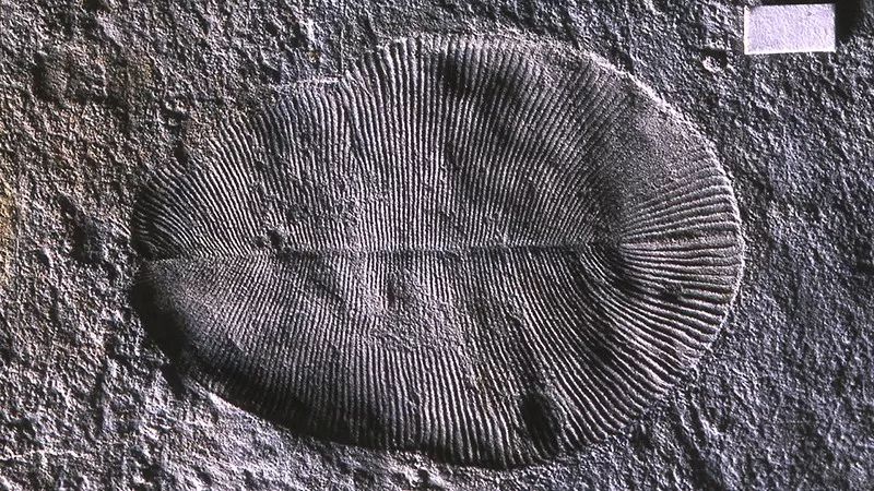 这种被称为“迪金森尼亚”的椭圆形生物长1.4米,全身有肋骨状结构,属于埃迪卡拉生物群。