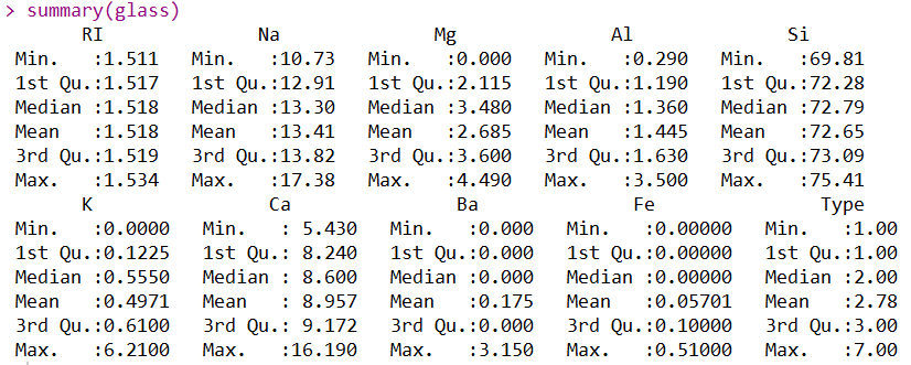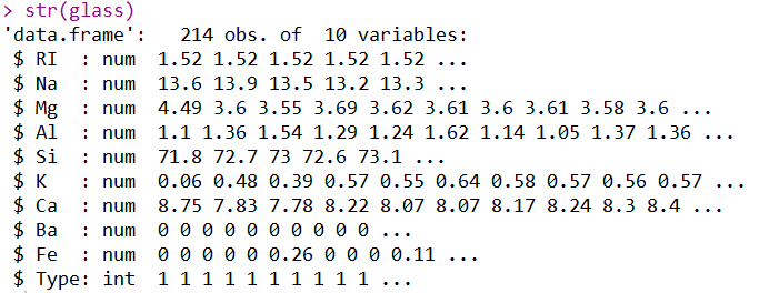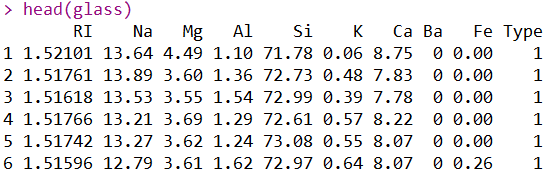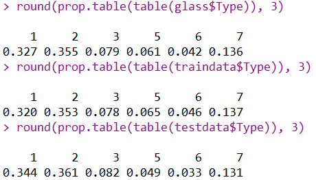 idx <- createDataPartition(glass$Type, p = 0.7, list = F)