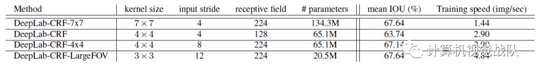 这种带孔的采样又称atrous算法,可以稀疏的采样底层特征映射,该方法具有通常性,并且可以使用任何采样率计算密集的特征映射。在VGG16中使用不同采样率的空洞卷积,可以让模型在密集的计算时,明确控制网络的感受野。保证DCNN的预测图可靠的预测图像中物体的位置。