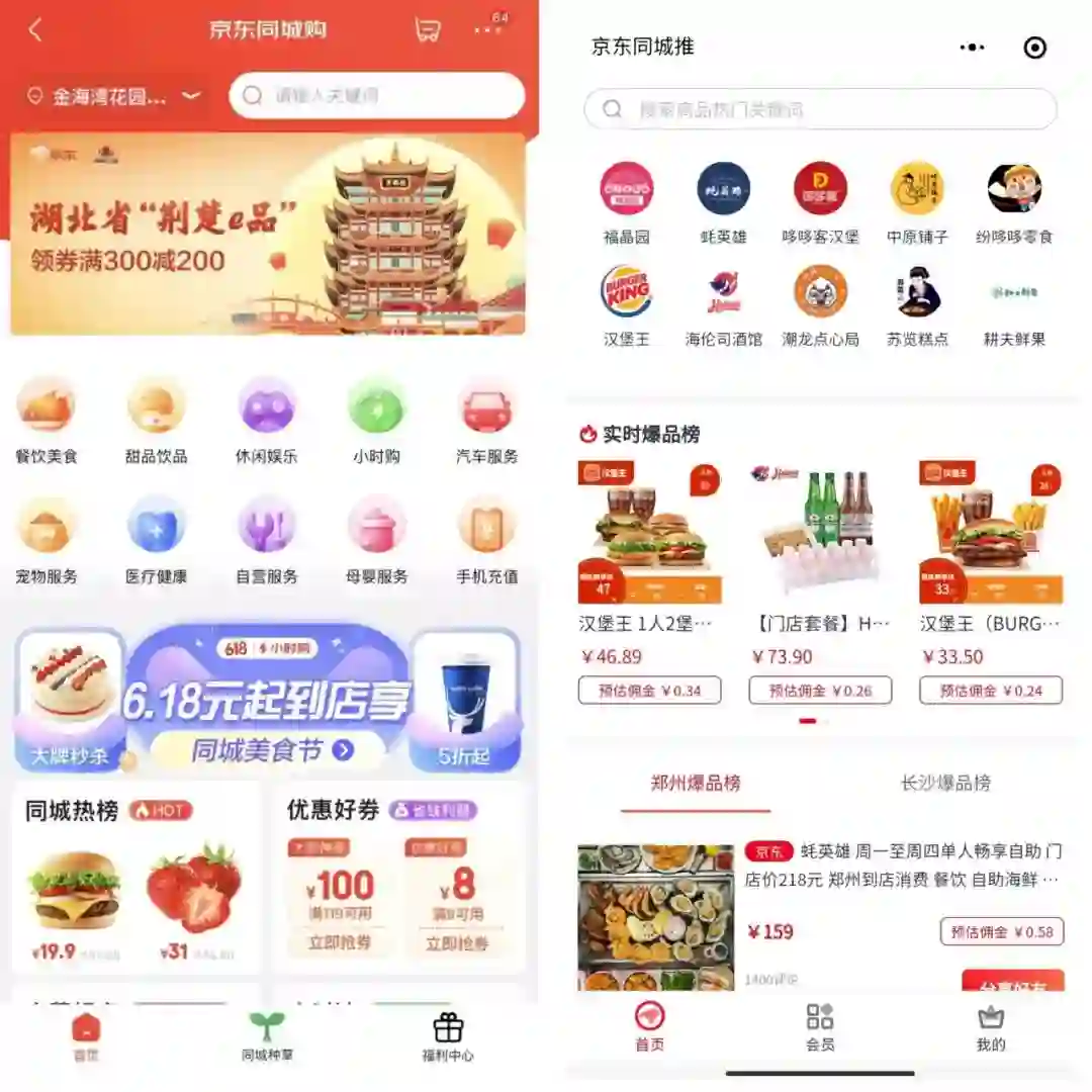 “京东同城购”(左)与 “京东同城推”(右)的小程序界面差异