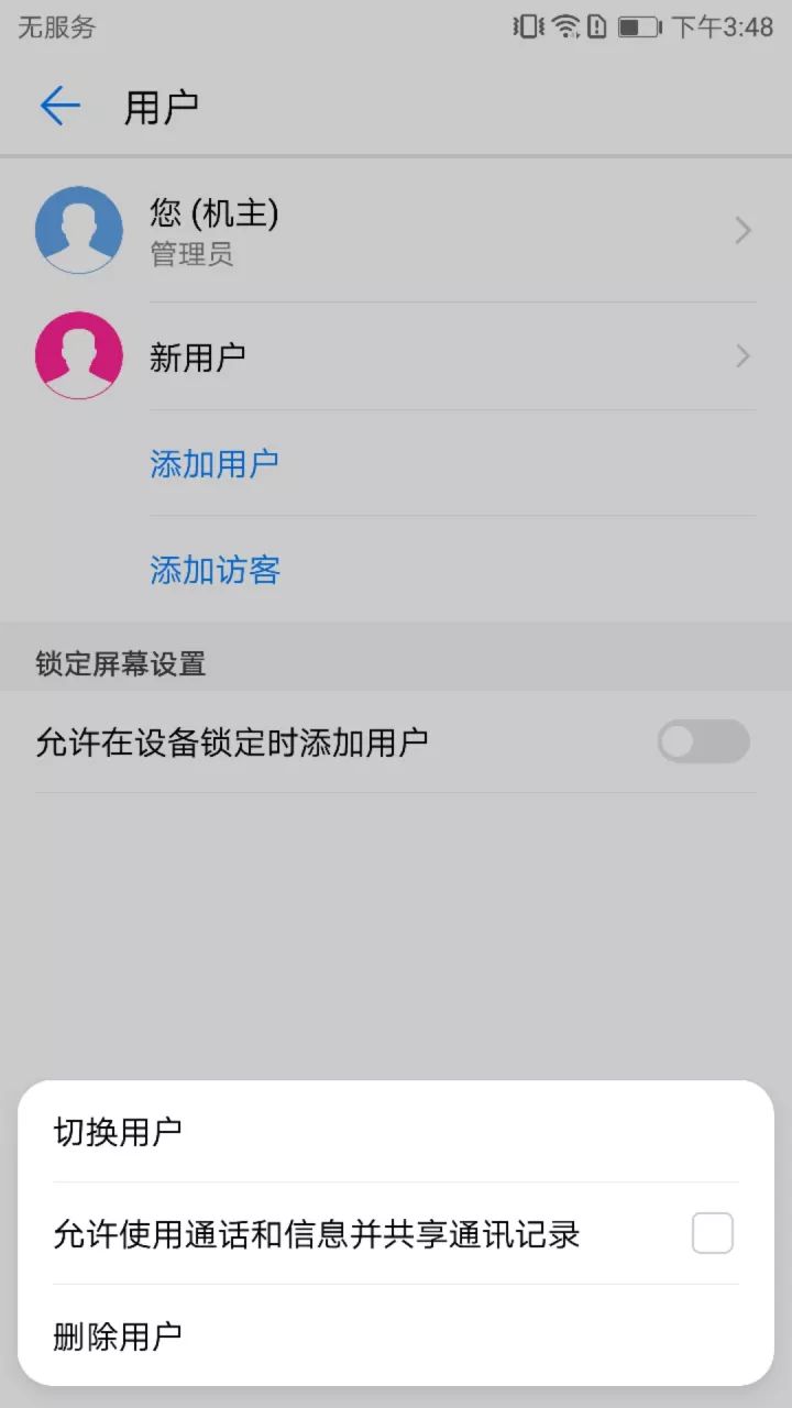 EMUI 8.0 上也有一个实现效果类似的功能:多用户。可以在手机的机主用户之外设置多个子用户和访客用户。其中子用户会得到一个全新的手机空间,他的使用权限基本和机主一致,但不能进行重置等敏感操作,短信电话需要机主授权;访客则受到了比较严格的限制,只能进行特定的操作。