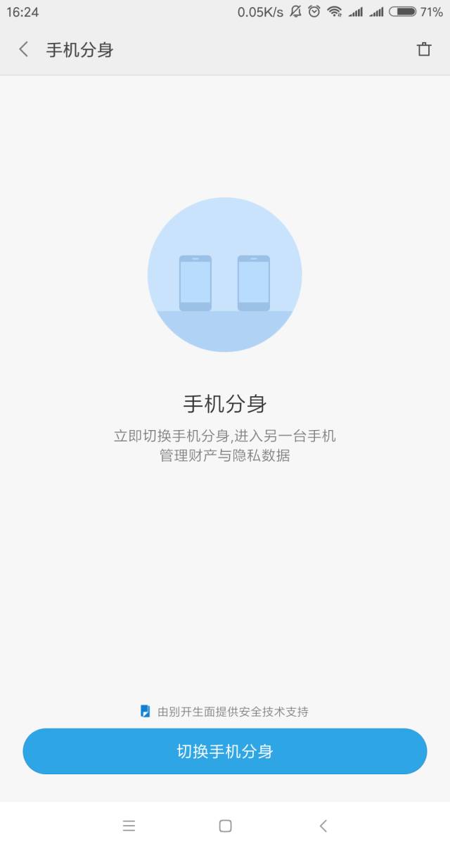 MIUI 8 发布时的一项重磅功能就是手机分身,可以在手机上添加一个新的空间,类似于电脑上的双系统。