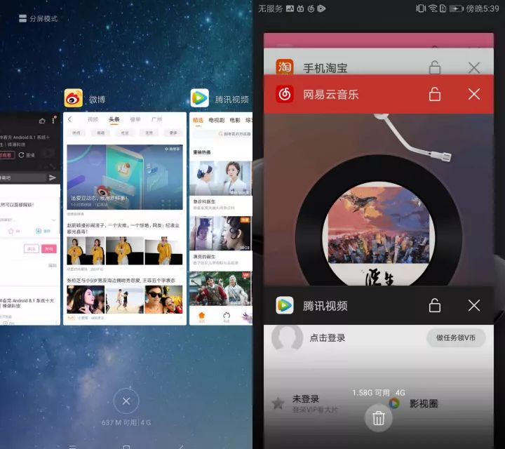 运行大约 5 分钟后,华为 Mate 10 上的淘宝后台已经被杀,小米 MIX 则更严重些,淘宝、微信和腾讯视频都被杀死。看来小米的内存管理机制还是有一定问题的,这也侧面说明,国内用户安卓手机选购 GB 起步还是很有必要的。