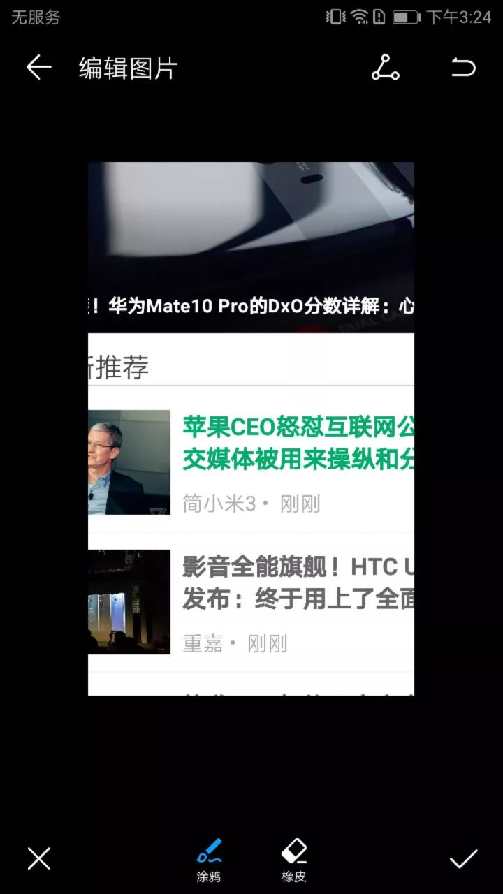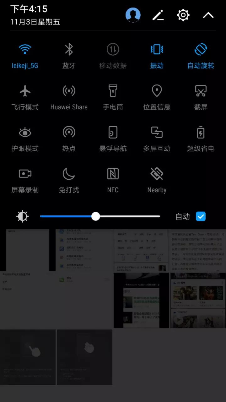EMUI 的截图方式为音量键加电源键,还可以设置为手指关节叩击屏幕,也支持长截图功能。另外,EMUI 自带的浏览器还可以实现自定义区域截图,这点还是要比 MIUI 9 方便的。