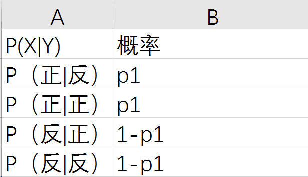 这里,有一个容易搞错的地方,H(x|y)叫做条件熵,它可不是条件概率p(x|y)的熵。为啥?因为p(x|y)压根就不是一个概率分布!!!还是以上面的两枚硬币为例,我们来计算一下p(x|y),注意,我们的例子中**假设x,y是相互独立的**。