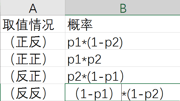 我们假设X和Y都服从伯努利分布,且相互独立,可以把二者想象为上面的抛硬币,这样思考可以有所依托,不至于太抽象。X正面朝上的概率为p1,Y正面朝上的概率为p2,那么,它们的联合熵是多少呢?