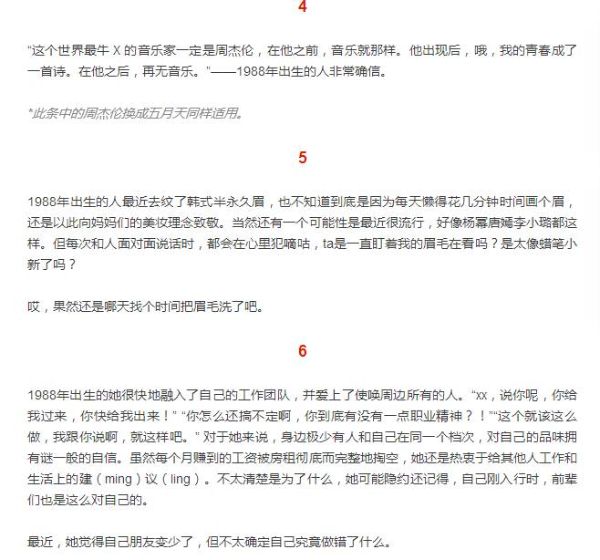 采访当中,我们问到他“印象最深的一次”推送。出人意料,Rocco提到的并不是阅读量最高的一篇,也不是团队最耗费心力的一篇,甚至不是其引以为傲“形式感”最强的一篇,而是一篇以文字为主的文章:《何止1988年,好多90后也已经是中年人了呢》。