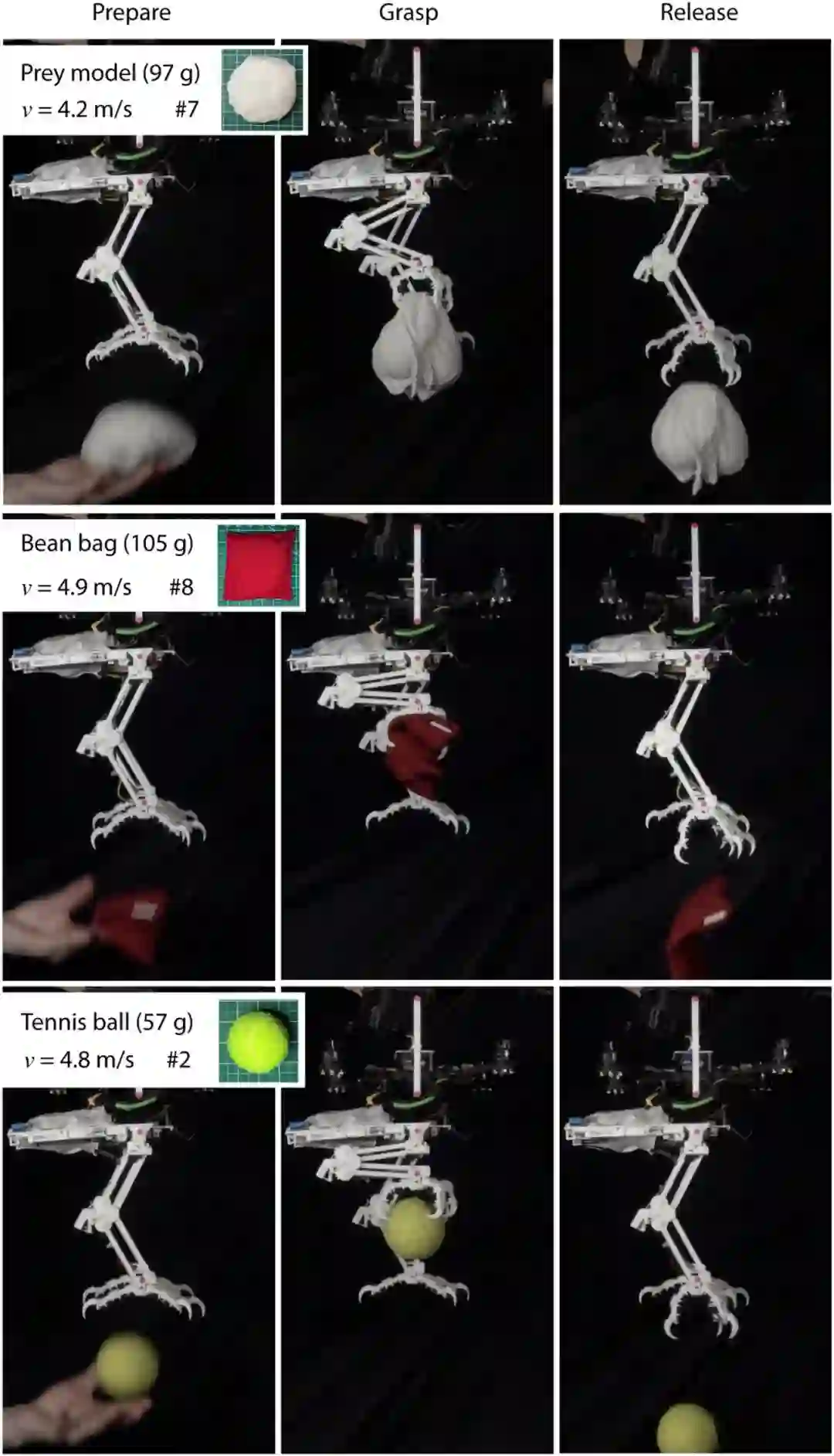实验期间,他沿着铁路系统(rail system)发射 SNAG,并以预定义的速度和方向将机器人发射到不同的表面,以观察在不同场景中的表现。同时将 SNAG 固定,Roderick 确认了它有能力抓住用手抛出的物体,如一个豆袋、网球等。