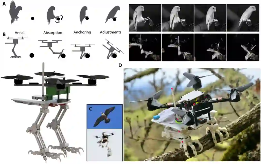 经过数百万年的进化,鸟类的起飞和着陆看起来如此简单,但是让无人机模仿鸟类的着陆方式并不容易,这涉及各种平衡问题。鸟类爪子像雪花一样,没有两个分支是一样的,它们的大小、形状和纹理各不相同,几乎可以栖息在任何一个物体上,例如树枝和岩石等。