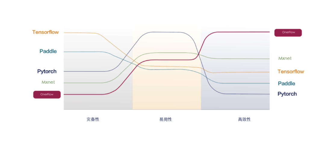 与其他几个“国产”AI框架相比,袁进辉认为,在完备性上,OneFlow比在今年3月开源的MindSpore和MegEngine要更好,不过支持的模型库还是比2016年就开源的PaddlePaddle要少。